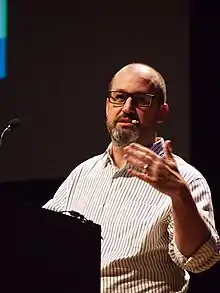 ![]() Mike Bracken speaking at Wikimania in 2014 | |