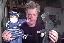 Mike Estabrook (born in Quincy, Illinois) is an American visual artist based in Brooklyn, New York. His work spans several media, including animation, painting, drawing, performance and installation. He makes work that is funny, grotesque, fantastical, and political. He often imposes these fantastical creations onto pre-existing cultural materials such as movie clips, army recruiting pamphlets, and magazines.