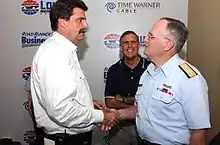 Helton (left) meeting with Admiral Thomas Collins in 2005 at the Lowe's Motor Speedway.