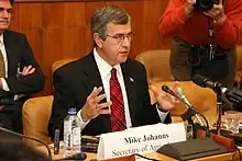 - 1 2 William Branigin, Jim VandeHei (December 2, 2004). "Johanns Nominated for Agriculture Secretary Nebraska Governor Will Replace Veneman". Washington Post. Retrieved February 18, 2013.