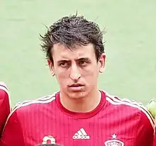 Oyarzabal represented Spain at under-18,[25] under-19 and under-21 levels.[26] On 17 May 2016, aged 19, he was called up to the full squad for a friendly against Bosnia and Herzegovina.[27] Twelve days later, he replaced Nolito (who had scored) at the hour mark of the 3–1 win.[28]
