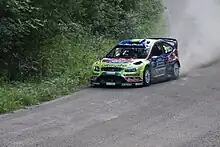On 17 December, Hirvonen was officially named as the number one BP-Ford Abu Dhabi factory driver for the 2008 season, after Marcus Grönholm's retirement.[1] His young compatriot Jari-Matti Latvala was named his teammate in the second factory Focus.[1] Hirvonen started the season with a second place at the 2008 Monte Carlo Rally, which was his and the BP-Ford Team's target.[2][3] In Sweden, he was considered as favourite,[4] but had to settle for second being unable to keep up with his younger teammate's pace.[5] After Rally Mexico, where he had punctures and had to change a wheel, and in Rally Argentina, where he retired from the lead and then re-joined under SupeRally rules to take fifth place, Hirvonen took his first win of the season at the inaugural Jordan Rally.