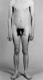 - ↑ Pinsky L, Kaufman M, Killinger DW, Burko B, Shatz D, Volpé R (September 1984). "Human minimal androgen insensitivity with normal dihydrotestosterone-binding capacity in cultured genital skin fibroblasts: evidence for an androgen-selective qualitative abnormality of the receptor". Am. J. Hum. Genet. 36 (5): 965–78. PMC 1684524. PMID 6333813.