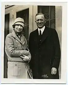 Her marriage to Texas politician Dan Moody was on April 20, 1926, on her 29th birthday. Months later on election night, her new husband defeated the sitting Governor Miriam Ferguson.[5] The 73-year-old Governor's Mansion was in a state of neglect and disrepair when the Moodys moved in.[6] Mrs. Moody appealed to the state Board of Control, and was granted monies to renovate the State Dining Room. For additional renovations and structural improvements, she received funding from her father.[7] The lengthy process of bringing the mansion up to livable modern standards left her determined to convince the State of Texas to provide regular funding for the mansion's future. After her husband's term expired in 1931, she authored a perspective of her tenure as the First Lady of Texas for The Dallas Morning News, including her recommendation that an entity needed to be created to oversee the mansion's upkeep. When the Forty-second Texas Legislature created the Board of Mansion Supervisors shortly after her recommendation, Governor Ross Sterling appointed her to head the board.[8]