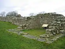 The internal measurements of the turret are 3.45 metres (11.3 ft) by 3.40 metres (11.2 ft) and it is of a type thought to have been built by the Legio XX Valeria Victrix. The entrance is 0.9 metres (3.0 ft) wide, and located in the east side of the south wall.[3][9]