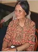 That same year, Hübschmannová began working at Czech Radio as a dramatic and literary editor,[2] which allowed her to take field trips and record the folklore, fairy tales and folksongs of the Roma communities.[4] Armed with a heavy, outdated tape recorder, which she kept in a bag slung over her shoulder, Hübschmannová wandered the countryside and recorded an extremely large collection of material,[6] accumulating over 500 tapes.[3] She continued her work on India, translating several important poets, including Mirza Ghalib[7] and in 1959, Hübschmannová took her first research trip to India.[2] During this period, she married the radio director, Josef Melč.[3] Returning to Prague, she translated Indian poets for almost a decade[8] and gave birth to her daughter Tereza in 1963. In 1967[2] she worked at the Oriental Institute beginning the preparatory work on a study of the Romani people, which was possible because of the loosening during the Prague Spring.[4] She helped found the Union of Gypsies-Roma during the period and edited a Romani-language journal.[1] Through the Union, Hübschmannová helped to revive early school education using the Romani language as the primary language until students gained competency in Czech.[9] But by August, 1968, events had changed and their work was brought to a halt,[4] leading Hübschmannová to take work in a nursery school near the town of Rakúsy in a Romani settlement.[2] She returned to India to study in 1969.[2]