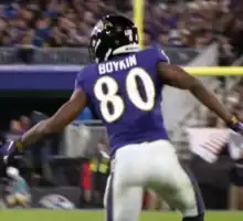 Boykin was drafted by the Baltimore Ravens in the third round (93rd overall) of the 2019 NFL Draft.[9] He caught a touchdown pass in his NFL debut in the Ravens' 2019 season opener against the Miami Dolphins.[10] He recorded a career-high three receptions and his second touchdown in Week 4 against the Cleveland Browns.[11] He recorded a career-high 55 yards including a 50-yard catch in Week 7 against the Seattle Seahawks.[12] He recorded his third touchdown against the New York Jets in Week 15.[13]