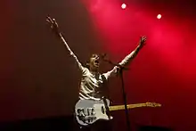 Kane (right) and Alex Turner (left) performing as the Last Shadow Puppets