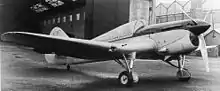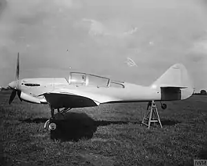 The sole Kestrel (G-AEOC) was built as a private venture, and first flew in May 1937.[2][3] On 26 June 1937, it appeared at the RAF Hendon display. Its performance was remarkable for a trainer; it reached 295 mph (475 km/h) at 14,000 ft (4,270 m), only 15 mph slower than the contemporary single-seat Hawker Hurricane with its much more powerful engine.[1] The Kestrel did not carry the same military load, though there was provision for a single 0.303 in (7.7 mm) Browning machine gun in the starboard wing outboard of the landing gear, and for a camera in the matching port side position. There is no record that this gun was fitted. There was also provision for eight practice bombs on two centre section racks.[1]