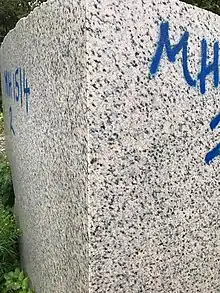 Milford pink granite, also known as Milford granite or Milford pink is a Proterozoic igneous rock located in and around the town of Milford, Massachusetts, covering an area of approximately 39 square miles (100 km2), as mapped by the USGS. It is also sometimes referred to as Braggville granite, for several quarries in the neighboring village of Braggville, Massachusetts.[2]