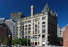 From 1870 to 1940, the town of Milford became famous for the "pink" variety of this stone, prized as a building material. According to local legend, the granite was "discovered" in the early 1870s by two brothers, James and William Sherman at Rocky Woods in Milford.[3] At its peak, over 1,000 men labored in dozens of quarries in Milford and nearby Hopkinton. A sample of Milford Pink is on display at the Smithsonian Institution.[4]