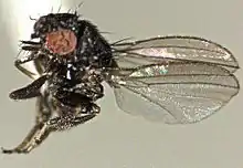 The Milichiidae are a family of flies in the suborder Brachycera. They were at one time included in the family Carnidae. At one time or another they have been assigned to various superfamilies, including Carnoidea, Chloropoidea,[3] and Agromyzoidea.[4] As usual for flies of these groups, Milichiidae imagines are tiny, but their heads are comparatively large, compared to many fly species of the same size, such as those in the family Phoridae.[5]