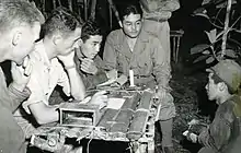 As the first MISLS class completed its training in May 1942, its students were immediately sent to the frontlines, participating in Guadalcanal to interrogate the first captured Japanese pilot.[11] At first, commanders were skeptical of the Nisei linguists. The first unit of MIS deployed under the command of Capt John Burden with the 37th Infantry Division to the Solomon Islands campaign. Upon arrival, Burden and his Nisei predictably found themselves assigned to menial tasks translating non-sensitive personal letters far from the front due to the lack of trust. After a chance meeting with Admiral Halsey, Halsey confessed to Burden that his own Caucasian interpreters only had a rudimentary understanding of Japanese and could only decipher the names of the prisoners. Burden convinced Halsey to give him a chance. Burden demonstrated the wealth of information that could be provided by a fully fluent linguist and vouched for the Nisei soldiers in his command to meet the demand. His presence proved to be instrumental in opening the eyes of the American field commanders to the value of the Nisei linguists.[5][12]