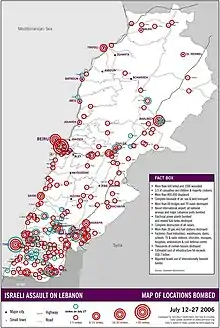 - ↑ "Major Attacks in Lebanon, Israel and the Gaza Strip". New York Times. 2006-07-19.