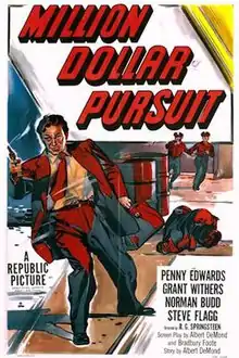 Million Dollar Pursuit is a 1951 film noir crime film directed by R. G. Springsteen and starring Penny Edwards, Grant Withers and Norman Budd.[1] The film's art direction was by Frank Hotaling.