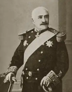 He was born on 6 June 1822 in Psara as the fourth out of the seven children of Konstantinos Kanaris, a distinguished fighter of the Greek War of Independence and his wife Despoina Maniati.[3] It was said that he was born on the same day that his father blew up the Turkish flagship at Chios.[1] He studied in the Bavarian Military School in Munich from 1833 until 1843. After the end of his studies Kanaris joined the Greek Navy and later he continued his studies in France,[4] where he served for three years in the French Navy.[5] In 1886, he was Inspector General of the Greek fleet and three years later (1889) he retired, but was recalled to duty in 1897 when the Greco-Turkish War broke out, temporarily undertaking the leadership of the Battleship Squadron from 7 August until 20 December 1897.[1]