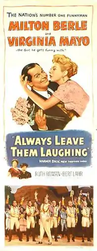 In 1933, Berle was hired by producer Jack White to star in the theatrical featurette Poppin' the Cork, a topical musical comedy concerning the repealing of Prohibition. Berle also co-wrote the score for this film, which was released by Educational Pictures. Berle continued to dabble in songwriting: with Ben Oakland and Milton Drake, he wrote the title song for the RKO Radio Pictures release Li'l Abner (1940), an adaptation of Al Capp's comic strip, featuring Buster Keaton as Lonesome Polecat.[12] Berle co-wrote a Spike Jones B-side, "Leave the Dishes in the Sink, Ma."