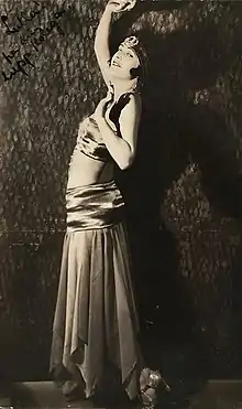 On a tour during the Ibsen jubilee in 1928, she played Ingrid, the Green-Clad Woman, and Anitra in Peer Gynt. At the Central Theater in 1929, she played the boy Eyolf in Little Eyolf.[11] She performed at the Central Theater until 1932, and then at the Carl Johan Theater until 1940, when she retired from the stage. She also appeared in films. Together with Odd Frogg (1901–1934), she performed the song "Hvorfor så alene?" (Why So Alone?) in the film Lalla vinner! (1932). It was composed by Dan Folke (1906–1954) and Kai Normann Andersen. The song was also released by His Master's Voice.[12]