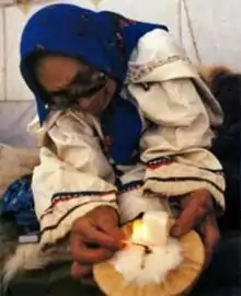 Mina Napartuk (1913 – 2001) is a Canadian Inuit artist known for her fabric and fur crafts, as well as her management of the women’s craftshop in Kuujjuarapik.[1]