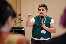In 2016, Tolu represented Malta at One Young World Summit in Ottawa, Canada. They delivered a speech on trans rights and was a member on a panel about gender equality.[11] Tolu spoke about challenging gender stereotypes, gender-neutral pronouns[12] and stressed the need for gender equality to include transgender and gender-non-conforming people. During their speech on trans rights and violence against trans people[13] at the One Young World Summit, Tolu spoke about TGEU's Trans Murder Monitoring project[14] and called on the One Young World community fighting similar forms of discrimination, violence and hatred towards diversity to unite together and bring change in all these communities.