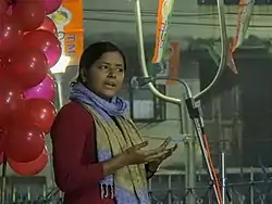 On 11 February 2021, she participated in the 2021 Nabanna Abhijan from College Street to protest for jobs that was intended to present a list of demands to chief minister Mamata Banerjee at Nabanna, which ended with conflicting claims of how many protesters were hospitalized after the police responded, and prompted a 12-hour strike by the Left Front against police brutality.[19] The injuries of the Nabanna protestors became a political issue in the upcoming election, and Mukherjee continued to emphasize the need for jobs in her campaign.[20][21] However, she did not win the election.