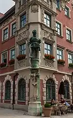 The town center of Mindelheim reflects the typical structure of a medieval settlement. The most important municipal buildings such as the town hall or churches are arranged around a central market square.