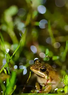 This species is about 22 mm in length and is nocturnal. It is seen in loose groups; key identifying features include pointed snout, presence of rictal gland, supratympanic fold from back of eye to shoulder, mid dorsum reddish to reddish brown in colour and minimal webbing in feet.[3]