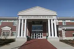 Minnechaug Regional High School (MRHS) is a public high school located in Wilbraham, Massachusetts, United States, and has a student population of approximately 1,200. It is the only high school in the Hampden-Wilbraham Regional School District. It serves the towns of Hampden, and Wilbraham.[3] The current principal is Stephen Hale. The school's official colors are green and white. Its school mascot is the Falcons.