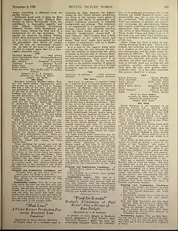 - ↑ "Moving Picture World". Periodical. Chalmers Publishing Company. November 1920 – via lantern.mediahist.org.