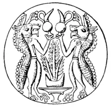 The Minoan Genius is a legendary creature that was common in the Minoan art of the Bronze Age Minoan civilization in ancient Crete. It is portrayed sometimes with the head of a lion, or of a hippopotamus, or of other animals. It is mostly seen on Minoan seals, often in pairs as supporters of deities. It is also sometimes called a "demon", though it seems generally to be a benign figure in Minoan religion; the meaning is that of a daemon in later classical religions.