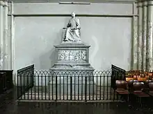 This monument, made by Lucardi, was erected in memory of the Poet Laureate Metastasio in 1855. In the central relief, Pope Pius VI is depicted blessing the dying poet. Behind him are the composer Salieri followed by W.A. Mozart, while J. Haydn is looking at the Pope.