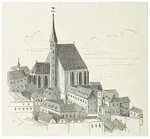 After the city fire of 1275, the foundation-stone for the new church was laid by Ottokar Přemysl.[2] It was one of the first Gothic churches in the east-Austrian area. After Ottokar's death in the battle on the Marchfeld, he was laid out here for thirty weeks.[2]