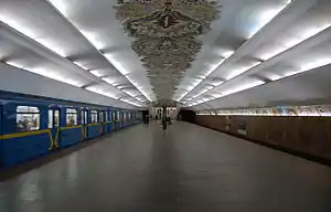 Minska (Ukrainian: Мінська, ⓘ) is a station on Kyiv Metro's Obolonsko–Teremkivska Line. The station was opened on 6 November 1982 in the Obolonskyi Raion of Kyiv. It was designed by I.L. Maslenkov, T.A. Tselikovska, and F.M. Zaremba. The station takes its name from the Minskyi Raion (now Obolonskyi Raion) in which it is situated.