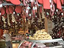Miran Pastourma is a renowned pastourma and sujuk charcuterie business and market in Athens, Greece.[1][2][3][4][5][6] The market has been in operation since 1922.[6] It is considered the charcuterie of the connoisseurs.[3][7] Despite the Greek economic crisis, Miran is expanding its business and has doubled in size to accommodate increased demand.[2] The founder of the shop, Miran Kourounlian, is thought to be the man who brought pastourma to Athens for the first time.[3] Miran is considered the largest company of its kind in the European Union.[3] The flavour of pastourma coming from the historical enterprise permeates Euripides Street in the centre of Athens.[3] Miran and its neighbor Arapian Cold Cuts are considered two of the historical establishments of Athens.[3] Miran has been in the same spot in Euripidou Street since its opening in 1922.[3] Miran is the recipient of multiple gourmet prizes.[8]