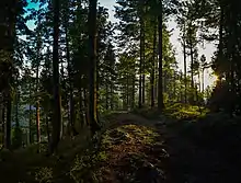 The Miranjani trek starts a few minutes drive away from the Governor House in Nathia Gali. The total length of the track is about 4.69 km and a net elevation of about 600 meters. Most of the path is soft dirt sparse with small rocks patches and hence is very easy to traverse with little effort. Intermediate to expert trekkers should be able to do it in 1 hour 15 mins to 2 hours. Beginners should also have no trouble and would be able to complete in 2–3 hours. The path to the peak is canopied with tall trees and is abundant in greenery. Nathia Gali, Mushkpuri Peak and Azad Kashmir are easily visible from the top. On a clear day even Nanga Parbat, the ninth highest mountain in the world, at a displacement of 166 km or a distance of more than 400 km can be seen shining with its snow clad peaks.