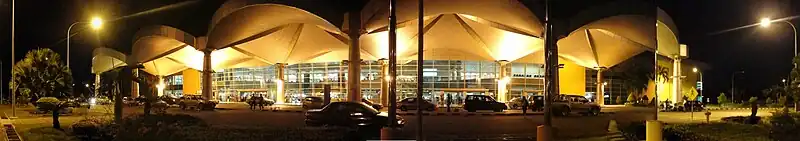 There are two aprons in the airport: Apron 'A' and Apron 'B'.[10] The expansion of Apron 'B' was completed in 2014. The aprons underwent yet another expansion in 2015 and were completed on 3 March 2016.[11] The expansion allows 4 additional parking bays for code C aircraft (i.e. Boeing 737 or Airbus A320 and equivalent) and 6 for ATR 72. All existing taxiways, gates and parking bays were renamed after the expansion and upgrades. The apron can now accommodate 7 code C aircraft, 1 Airbus A330 or Boeing 777, 9 ATR 72s and 4 Viking Air DHC-6-400 Twin Otters at any given time. Gates A1 - 3 in apron 'A' were renamed Gates 2 - 4 (parking bays 2 - 4), with a new addition of Gate 5 which consists of bays 5 - 8. All gates are for code C aircraft, except for Gate 4 which is optimised for widebody aircraft of up to Airbus A330 & Boeing 777. Apron 'B' is restricted to ATR 72 aircraft or smaller (i.e. DHC-6 Twin Otter) and is primarily used by MASWings, except for parking bay 1 (formerly parking bay B1), which is used for code C aircraft. Gates B and C in apron 'B' were renamed to Gate 1 consisting of parking bays 1 and R1 - R13 (parking bays R1 - 3 were former parking bays B2 - B4 while bays R10 - R13 were initially bays C1 - C4). Parking bays R4 - R9 are new additional parking bays. For the comfort of passengers boarding and disembarking ATR 72s or DHC-6s, 3-fingered piers with covered walkways were also constructed in apron 'B', based on the walkways found in Low cost carrier terminal (LCCT) of Kuala Lumpur International Airport (KLIA) that is now closed.