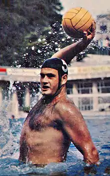 Mirko Sandić (Serbian Cyrillic: Мирко Сандић; 9 May 1942 – 24 December 2006) was a Serbian water polo player who led Yugoslav teams to a gold medal at the 1968 Summer Olympics and a silver medal at the 1964 Summer Olympics. He also competed in the 1960 and 1972 Olympics where his teams placed fourth and fifth, respectively. He was given the honour to carry the national flag of Yugoslavia at the opening ceremony of the 1972 Summer Olympics in Munich, becoming the twelfth water polo player to be a flag bearer at the opening and closing ceremonies of the Olympics.[1] Between 1958 and 1974 Sandić played more than 235 matches for the Yugoslav national team contributing 250 goals.[2][3]