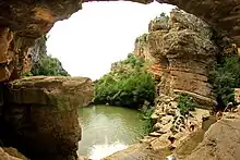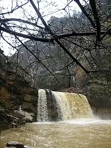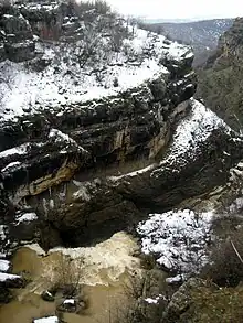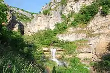 The geological structure of the park consists of ultra basic rocks and volcanic-sedimentary formations (diabase chert) of Jurassic Era and the carbonates from the lower and upper Cretaceous.[3] The geological structure of Mirusha canyon mainly compose Mesozoic limestone cliffs with tendency to drop in the direction of the water flow. Extension of these rocks in the direction northwest–southeast, and dropping to the southeast, presents geological extension of rocks.