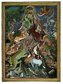 Miskin (c. 1560 - c. 1604), also known as Miskina, was a Mughal painter in the court of Akbar I. The name 'Miskin' itself is a pen name.[1] Miskin is recorded by the historian and grand vizier of Akbar, Abu'l-Fazl, in a record containing a list of prominent Mughal painters. Further, he is regarded as an extremely skilled painter of animals.[2]