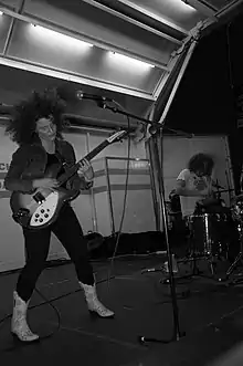 White founded her current group, White Mystery, with her brother Francis on April 20, 2008, named after an Airheads flavor.[5] White Mystery is known for their relentless tour schedule in which White claims to have played 1,000 shows in the band’s first ten years. The group has played with national acts such as Garbage,[6] Shonen Knife, The Stooges and Weezer.[7] They played on a parade float with Sir Richard Branson for the grand opening of Virgin Hotels Chicago.[8] The group has released nine full-length albums as of 2018.