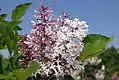 These flowers most commonly bloom in mid to late spring between the months of April and May.[5] Each shrub yields tight panicle clusters of purple-tubular modeled flower buds that are 4" to 6" in size which grow in pairs.[3] Each singular flower consists of a four-lobed corolla, accompanied by a corolla tube, length being 5 to 20 millimetres (0.20 to 0.79 in) long; they are monoecious species. The pistils of each flower contains the fertile stamens and stigmas that are used for reproduction. Lilac plants require an interval of a cold-front for flowering purposes before it they go dormant for the season.[7] At full bloom, each flower will consist of 4-5 petals.[3] The shades of the flowers may vary between light hues of purple, pink, and light hues of blue. Of the overall species of lilacs, Miss Kim lilacs produce the most fragrant flowers during bloom season.[8]