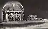 ![]() 1941 expansion of McMillan Reservoir. The pieces spent decades in storage, and suffered vandalism. Only the central figures and upper basin remain.[37] |
