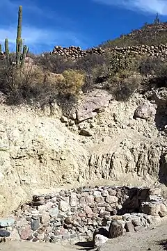 The hot mineral springs are located on the site of the Spanish Misión San Francisco Borja founded in 1762 by the Jesuit priest and explorer Wenceslaus Linck who worked with the local indigenous Northern Cochimí people who had been Christianized by Retz.[2][3]