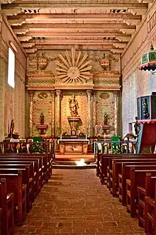 • The painted walls inside the church are the original artwork by artist Esteban Munras and other Salinan artists.[17]