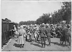 In 1915, the French high command realized that the war would last far longer than they had originally imagined. They authorized a major recruitment drive in West Africa and 93 Senegalese battalions were raised between 1915 and 1918.[3] The harsh conditions of trench warfare were a particular source of suffering to the un-acclimatized African soldiers and, after 1914/15, the practice was adopted of withdrawing them to the south of France for training and re-equipping each winter.