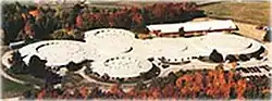 Misssiquoi Valley Union's main/original building was constructed in an open design format with five circular self-contained "pods" to house the more than 1000 expected students. On campus, there are four soccer fields, two baseball fields, three softball fields, a track, and a football field. There is also an agricultural building that houses cows, pigs, sheep, donkeys, etc., that are raised by the students. The beef is used for lunch at the school. In the building there is a gym that is used for basketball and volleyball. The building also contains the Trahan Theater which is used to host the school's annual Skit Nite and Musical. It is also used for concerts, award ceremonies and assemblies. The gym is also used for assemblies.