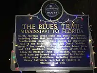 The Mississippi Blues Trail was created by the Mississippi Blues Commission in 2006 to place interpretive markers at the most notable historical sites related to the birth, growth, and influence of the blues throughout (and in some cases beyond) the state of Mississippi. Within the state the trail extends from the Gulf Coast north along several highways to (among other points) Natchez, Vicksburg, Jackson, Leland, Greenwood, Clarksdale, Tunica, Grenada, Oxford, Columbus, and Meridian. The largest concentration of markers is in the Mississippi Delta, but other regions of the state are also commemorated. Several out-of-state markers have also been erected where blues with Mississippi roots has had significance, such as Chicago.[1]