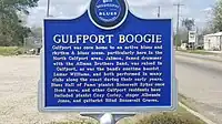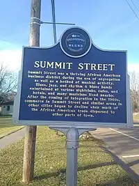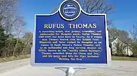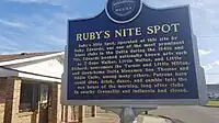 The second marker is located by the Southern Whispers Restaurant on Nelson Street in Greenville. Nelson Street, the home of many nightclubs, cafes, and juke joints over the years, was once the primary center of African-American business, entertainment, and social life in the Delta.[4] For many decades this historic strip drew crowds to the flourishing club scene to hear Delta blues; big band; jump blues; rhythm & blues; and jazz.