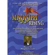 Mississippi Rising - The Concert in Support of the Hurricane Katrina Recovery Efforts (2005) telethon (2 DVD set)[1] was quickly put together after Hurricane Katrina had devastated the Gulf Coast of the United States between 23 and 30 August 2005.[2][3][4] This three-hour concert and telethon was broadcast live on MSNBC throughout North America on 1 October 2005. It was marketed commercially as a 2 DVD set in very limited numbers. All proceeds have gone to the Mississippi Hurricane Recovery Fund.