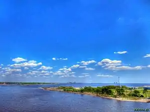 Deepwater ports along the sound include Gulfport and Pascagoula. Dredged ship channels running basically north-south connect those ports to the Gulf of Mexico, running between pairs of the barrier islands. The Bay of St. Louis and Biloxi Bay on the northern side of the sound jut into mainland Mississippi. These bays drain the Wolf and Jourdan Rivers as well as the Bernard, Davis, and Turkey bayous. The Pascagoula River and the Pearl River flow into the sound.[7]